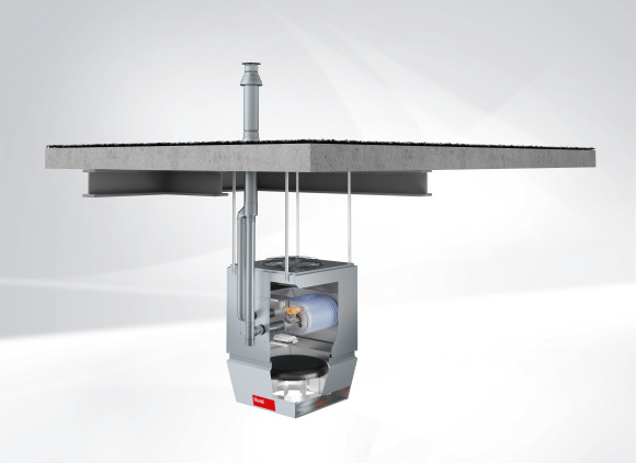 Toate unitățile de încălzire TopVent sunt livrate gata de conectare cu accesorii pentru gaze arse și set de suspensie pentru o instalare simplă pe tavan sau pe perete. Datorită generării descentralizate a căldurii, nu este necesară o cameră tehnică pentru cazane sau conducte de apă, ceea ce reduce costurile de investiție.