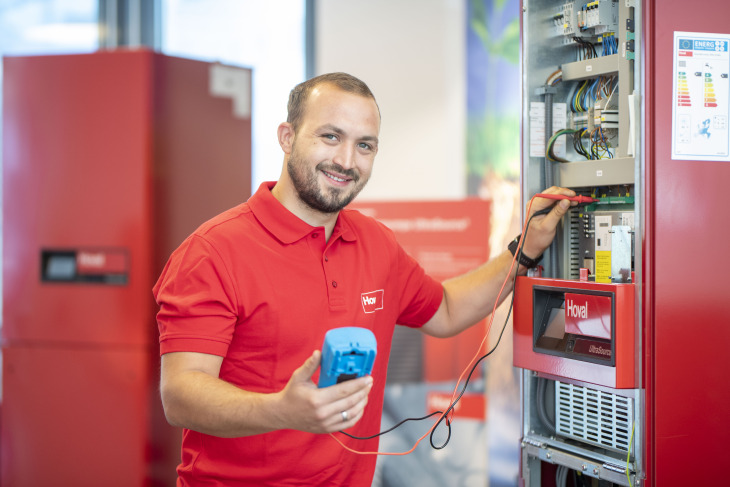 Recomandare: Programați din timp o vizită cu echipa de service Hoval pentru pompe de căldură, cazane în condensație pe gaz sau pe peleți, pentru a evita reparațiile costisitoare în plin sezon.