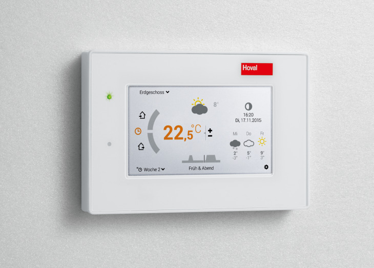 Un termostat ambiental sau un sistem inteligent de control (ex. Hoval TopTronic E) vă poate ajuta să setați temperaturi diferite în funcție de zi, oră și condițiile meteo. Sistemele moderne se conectează la internet și ajustează funcționarea pe baza prognozei meteo, evitând supraîncălzirea și consumul excesiv de energie.