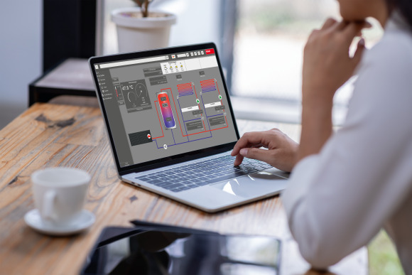 Hoval poate furniza și componentele perfecte pentru completarea sistemului: de la prepararea apei calde menajere și distribuția energiei termice, pompele de căldură/unitățile de stocare a energiei termice și reglarea adecvată, până la sistemul de control. Acest sistem în cloud vizualizează starea de funcționare a sistemului și permite monitorizarea și controlul acestuia din orice locație.