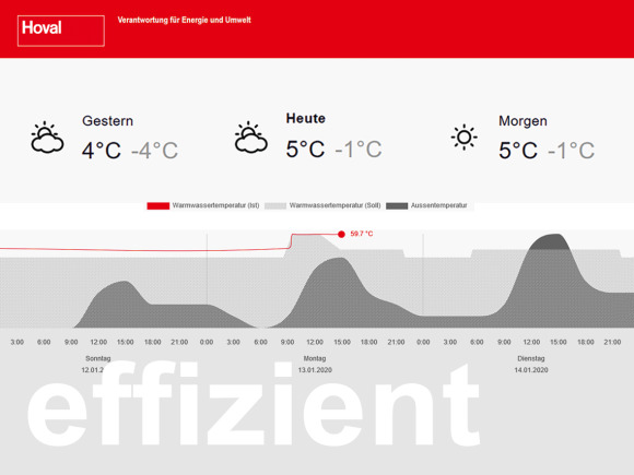 Und weil die Hoval Regelung als einzige Echtzeit-Daten aus der Wettervorhersage verarbeitet, sparen Sie vorausschauend Energie.