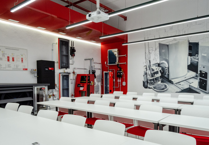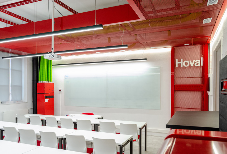 Prin designul său unic și echipamentele inovatoare, sala de seminar Hoval pregătește o nouă generație de ingineri pentru provocările viitorului. Este o dovadă vie a angajamentului Hoval față de educație, în spiritul responsabilității pentru energie și mediu.