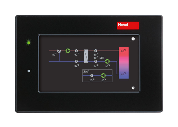Cu ajutorul sistemului de control HovalSupervisor, puteți vizualiza, controla și optimiza sistemele și procesele acestora dintr-un punct central - de la generarea de energie la rețelele energetice. Echipamentul de control și-a dovedit eficiența de-a lungul multor ani și a fost extins în versiunea 4.0 pentru a include module de vizualizare dinamică pentru generatoarele de energie termică Hoval.