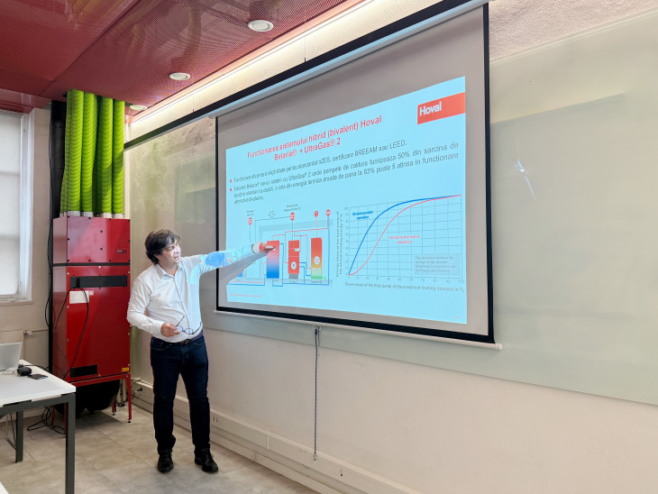 La invitația Ș.l. univ. dr. ing. Teodora Mădălina Nichita – cadru didactic la Facultatea de Inginerie a Instalațiilor din cadrul UTCB, absolventă a Facultății de Instalații, specializarea Instalații în construcții (2000) și Studii aprofundate – Inginerie Termică (2001) – compania Hoval a susținut o prezentare tehnică dedicată studenților, având ca temă sistemele și soluțiile moderne HVAC.